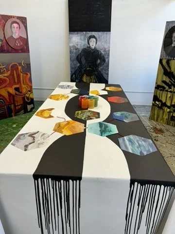 I’m fascinated with the underlying systems of life - the geometry of DNA, the wavelength of visible color, and the inherited genetic memory of family myth. I explore these themes in large, colordul paintings, and the ephemera of past lives, seeing connections between the shape of a bee’s cells and the shape of a family’s narrative arc.